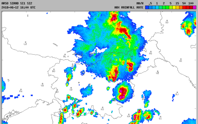Radarska slika se ne umirja, nevihtne celice na jugovzhodu države, ki se pomikajo proti severovzhodu, so za seboj že pustile točo. V Prekmurju in na Štajerskem bi se po napovedih Neurje.si lahko razvile supercelične nevihte s točo.