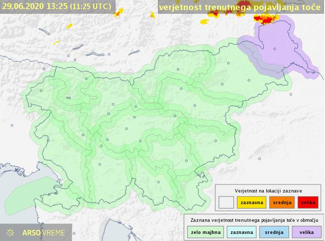 Za Pomurje, Štajersko in Koroško danes napovedane močnejše nevihte s točo. Glede na zadnjo radarsko sliko se zdi, da so nevihte najbolj možne na Goričkem.