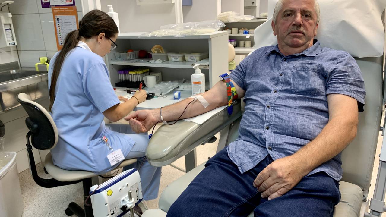 Krvodajalca Marjan Žavcer in Robert Erhatič sta danes kri darovala že stotič. Stroka poziva, da krvodajalstvo še naprej ostane prostovoljno, a predlaga plačilo potnih stroškov in krajše čakalne dobe.