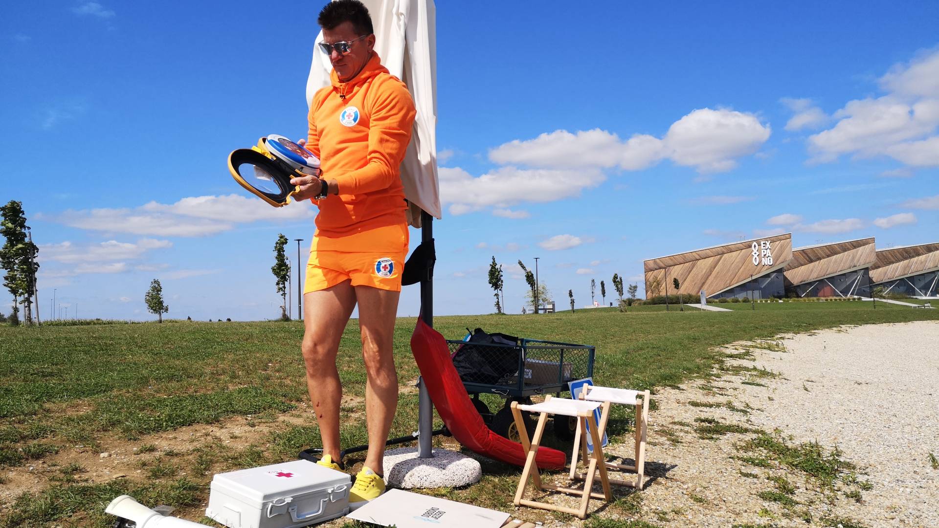 »Vedno znova tudi poudarjamo, da je tukaj kopanje na lastno odgovornost, to jezero zaenkrat še nima statusa kopalne vode, ampak ne glede na to, smo poskrbeli, da je v zadnjih dveh letih, ko je ta lokacija urejena, tukaj reševalec iz vode,« je jasna Helga Lukač, vodja paviljona Expano.
