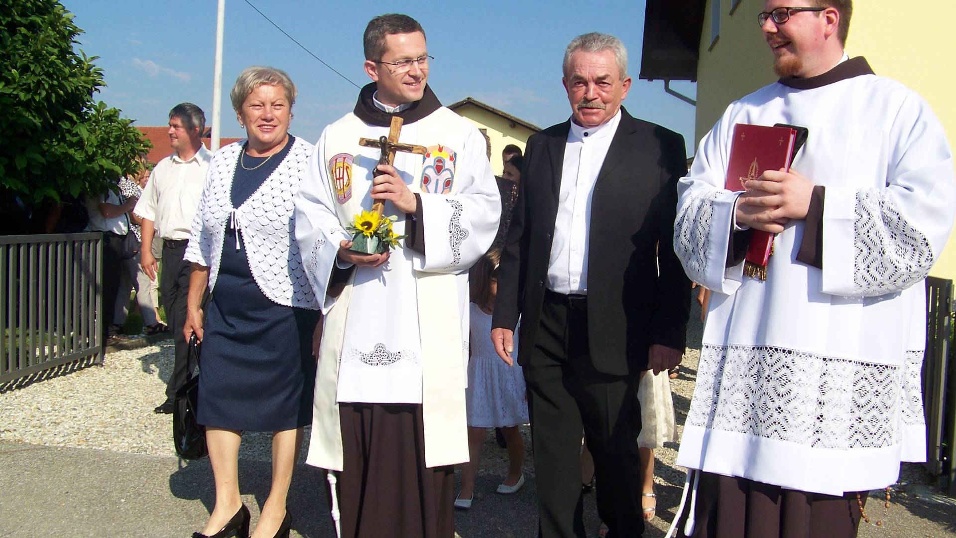 Že dopoldne so se na njegovem domu v Beltincih zbrali številni domačini in ostali sorodniki, kajti novomašnik se je poslovil od svojih staršev in sestre ter sprejel križ in blagoslov.