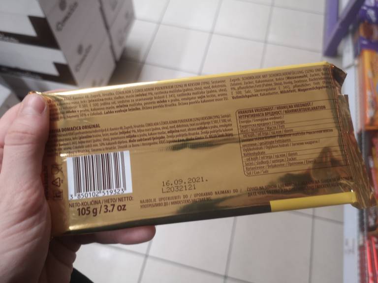 Ker bralec ni imel dokaza, da je čokolado res kupil v zadnjih dneh in ne pred meseci, ko rok še ni pretekel, smo se v uredništvu Mariborinfo odpravili v trgovino Jager v Melju in poiskali omenjeno čokolado.