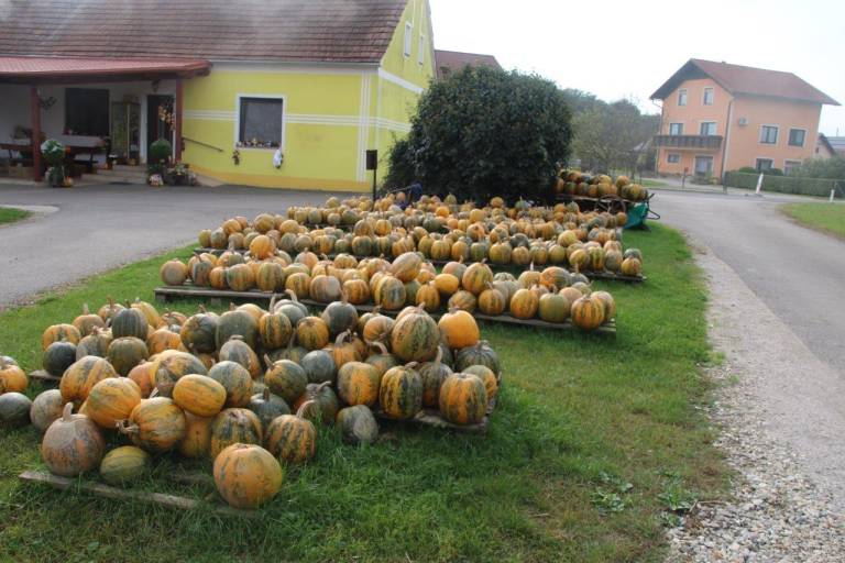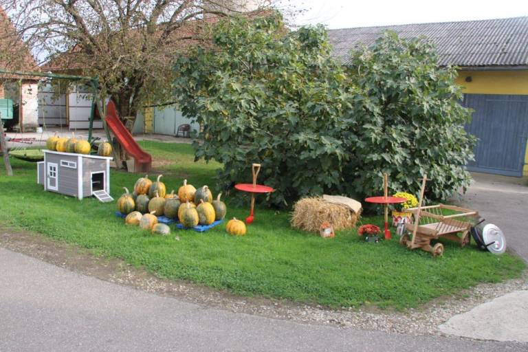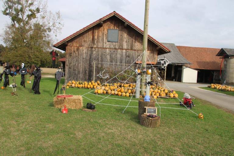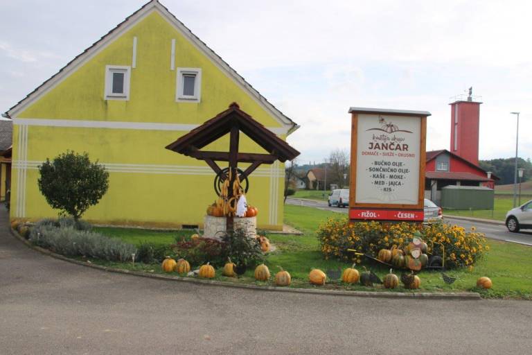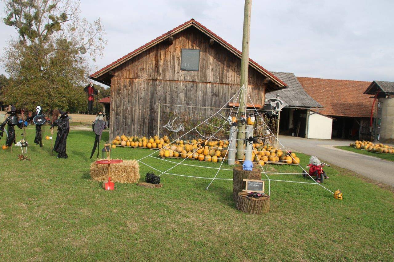 Dvorišče kmetije Jančar v Črešnjevcih, znane predvsem kot »Kmetija dobrih okusov«, te dni že krasijo buče in drugi praznični okraski, kmetija se je tako prelevila v čarovniško 'deželo'.