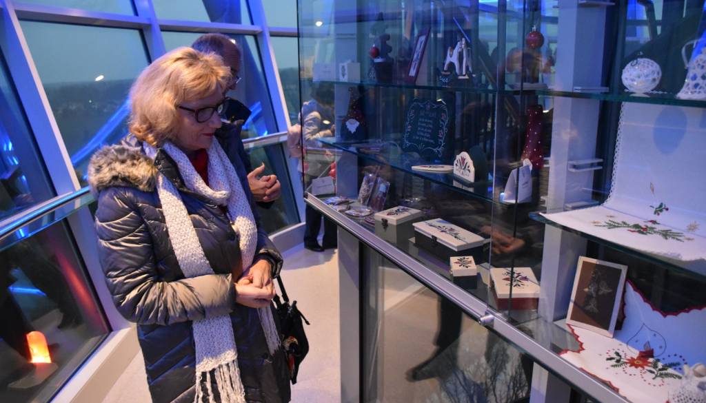 Praznična tematika je rdeča nit tokratne ljubiteljske razstave, ki na stolpu poteka že drugo leto zapored in kjer je poleg darilc, venčkov, prtičkov, okraskov najti tudi darilne škatle in lončene izdelke, izdelke iz blaga ter ličja.