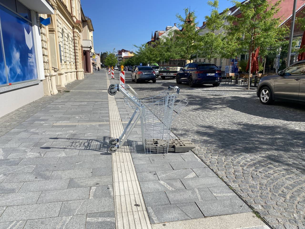 Uničene montažne odbojne table in nakupovalni voziček so že zamenjali.