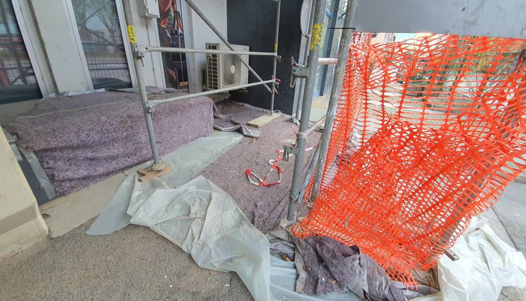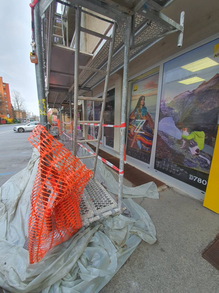 Zaradi gradbenega odra naj bi bilo tudi oteženo poslovanje, v podjetju dnevno prejemajo pritožbe dostavnih služb, da ne morejo varno prenašati paketov. Bralke in bralci so nas opozorili tudi na umazanijo, ki vlada okoli gradbenega odra in je nihče ne očisti.