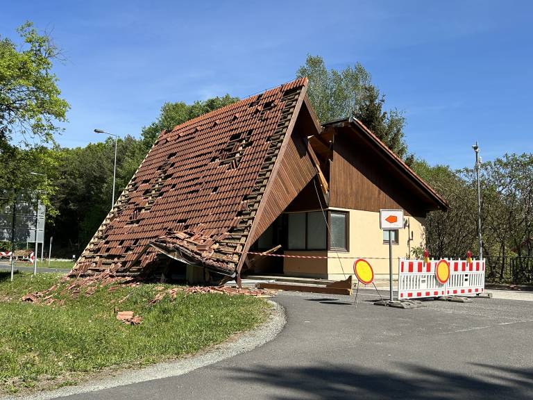 Takrat je bilo ugotovljeno, da je madžarski voznik traktorja s prikolico zadel jeklenico, s katero je stabiliziran nadstrešek objekta.