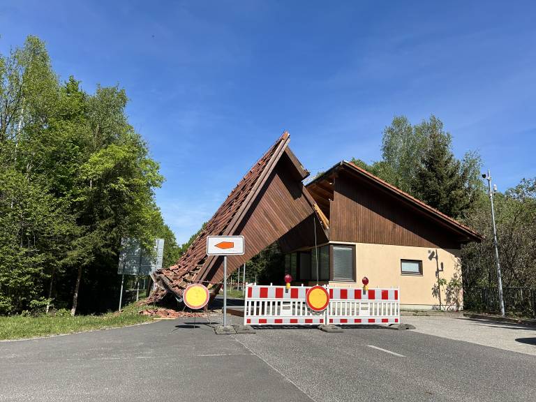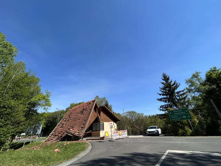 Zaradi poškodb se je čez nekaj trenutkov nadstrešek zrušil in padel na cesto, ki je na madžarski strani meje.