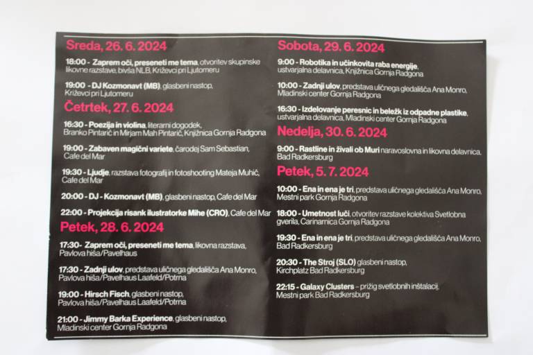 Osrednja predstavitvena slovesnost bo 5. julija ob 18. uri pred carinarnico Gornja Radgona. Vsak festivalski dan bo ponudil razvedrilo in pogostitve za obiskovalce, vsi dogodki pa bodo brezplačni.