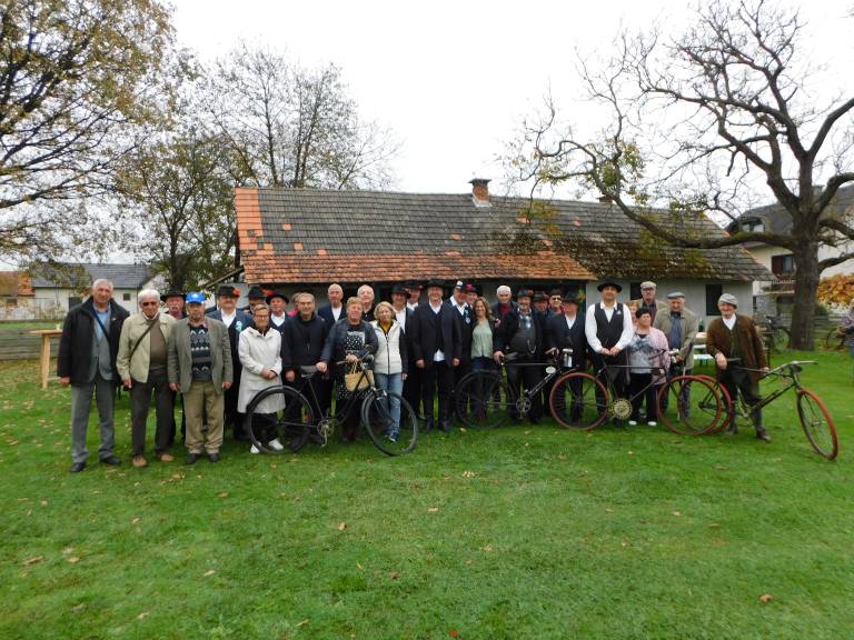 S starodobnimi kolesi so se popeljali iz Beltincev v Črenšovce, kjer so se ustavili na domačiji člana društva Ivana Smeja.