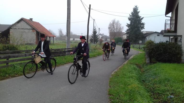 Vsi so se oblekli v starodobna oblačila, kar je dalo čar zaključni vožnji. Na glavi pa so imeli klobuke.
