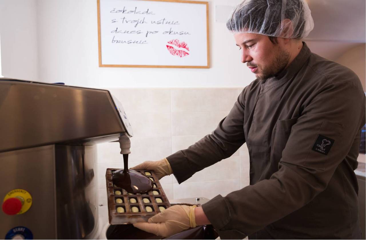 Zgodbo o čokoladi je zakrivila sama, saj je bila pred leti navdih možu Tomažu, ki je zanjo ob božiču ročno izdelal čokoladne pralineje.