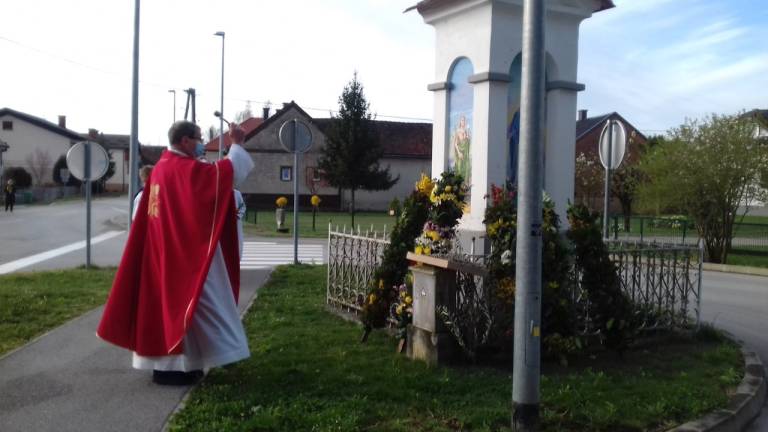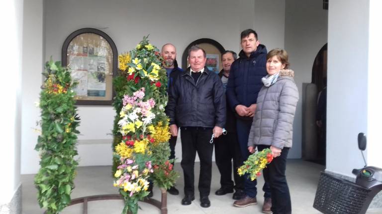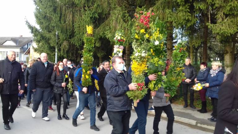 Na cvetno nedeljsko jutro so se tako verniki župnije Bogojina s šopki zelenja in cvetja zbrali pri pilu svetega Florijana, pod župnijsko cerkvijo.