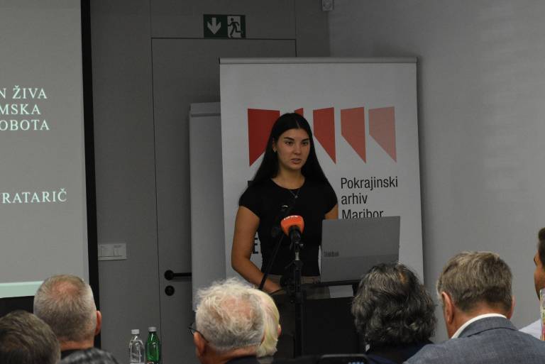 Dijakinja Živa Horvat iz Ekonomske šole Murska Sobota je predstavila raziskovalno nalogo o prekmurskih Romih med letoma 1941 in 1955:
