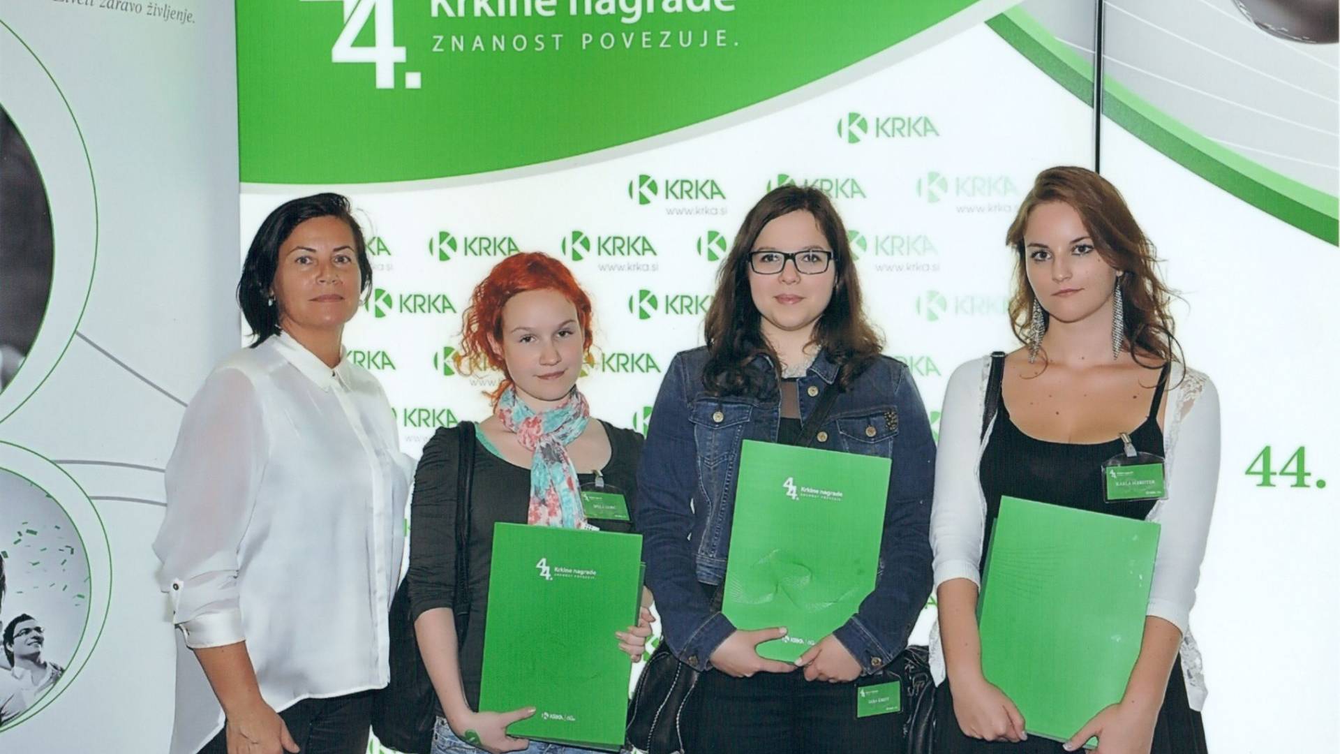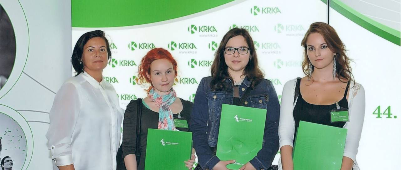 Krkino nagrado so si na Gimnaziji Franca Miklošiča Ljutomer pridobili z raziskovalno nalogo Vrednotenje interakcij (bioloških) makromolekul z encimsko imunskimi testi.