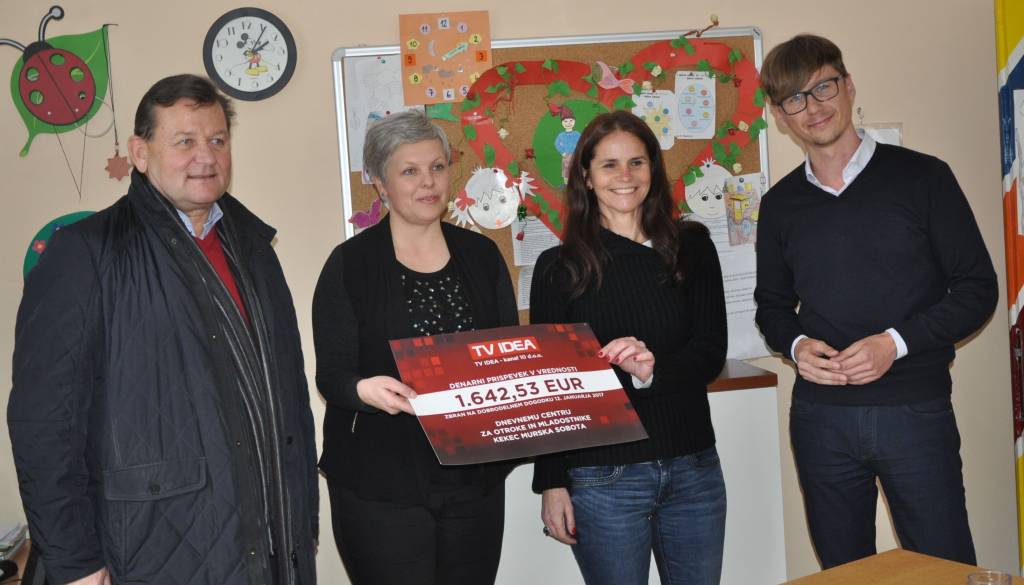 Skupni znesek zbranih sredstev v višini 1.642,53 evrov je v imenu osrednje pomurske televizije TV IDEA predal Dnevnemu centru za otroke in mladostnike direktor televizije Mitja Podgajski. Krizni center deluje v zgradbi, ki je sicer lasti MO Murska Sobota, zato je bil ob predaji donacije prisoten tudi Aleksander Jevšek, župan MO Murska Sobota. Donirana sredstva sta prevzeli Nataša Meolic, direktorica CSD Murska Sobota in Simona Neuvirt Bokan, vodja DC Kekec.