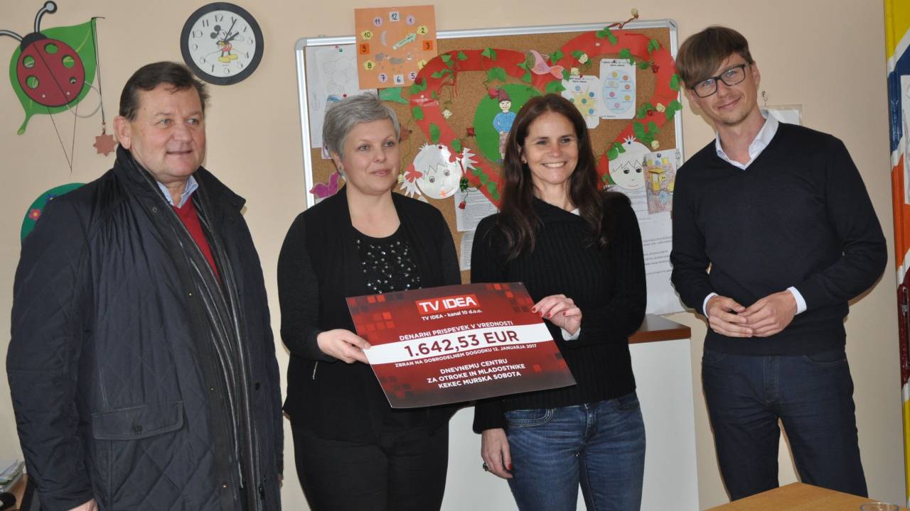 Osrednja pomurska televizija TV IDEA je predala donacijo Dnevnemu centru za otroke in mladostnike Kekec Murska Sobota v višini 1.642,53 evrov, ki so bili zbrani na Dobrodelnem večeru humorja s Tadejem Tošem.