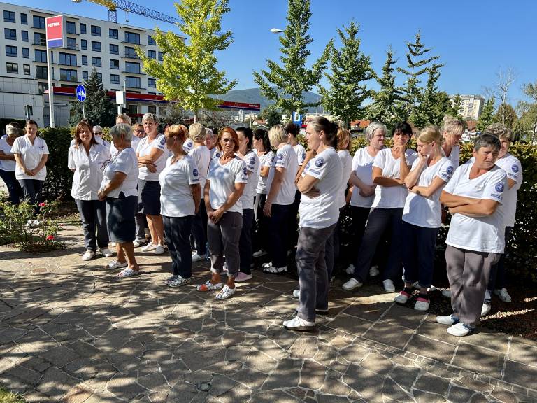 Številni zaposleni so se danes dopoldne tako zbrali pred matično enoto Doma Danice Vogrinec Maribor. Ogroženi in užaljeni so nad nedavnimi anonimnimi očitki.