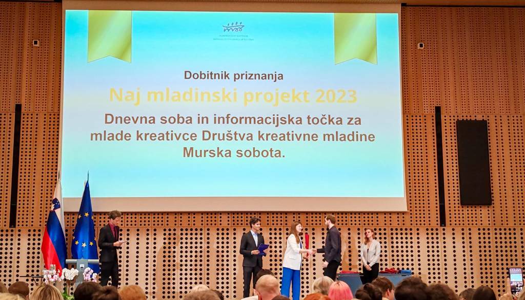 Društvo kreativne mladine Murska Sobota je prejelo priznanje za naj mladinski projekt za Dnevno sobo in informacijsko točko za mlade kreativce.