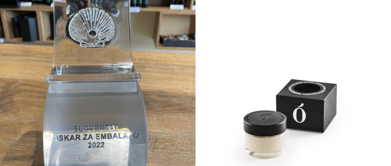 Nagrado so prejeli za embalažo Luxury Kocbek Gourmet - Escargot Pearls, ki je napolnjena s 40 grami polžjega kaviarja. Idejo in design je prispevala agencija VBG Gregor Žakelj, za izdelavo pokrova pa je zaslužna Proizvodnja preciznih kovinskih izdelkov Tehnior.