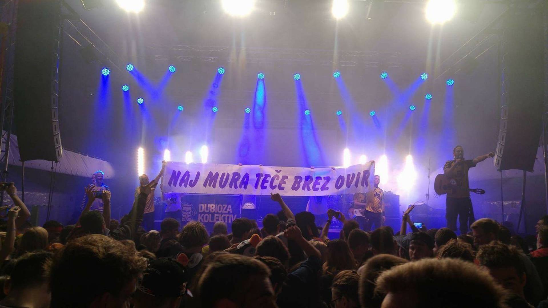 Glasbena skupina Dubioza kolektiv, katere član je tudi Prekmurec Jernej Šavel, je prejšnjo sredo navdušila na 57. Kurentovanju na Ptuju. Med svojim koncertom pa so razprli transparent z napisom: Naj Mura teče brez ovir.