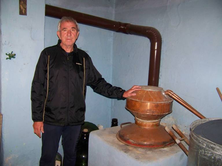 V njej sedaj stojita dva zidna kotla za kuhaje žganja, s prostorninama 65 in 40 litrov, kjer so izdelovali različne vrste žganih pijač iz raznega sadja (sliv, hrušk, aronije in podobno), ki je zraslo v domačem sadovnjaku.