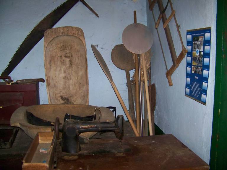 Prav tako pa številni primeri starega kmečkega orodja za peko kruha, lesena korita, omela, stari šivani stroj, leseni ribaš za ribanje zelja ali repe, lesena posoda, kjer so pozimi ob kolinah shranjevali zaseko, klobase in meso ter veliko nabožnih in ostalih slik iz prejšnjega stoletja.