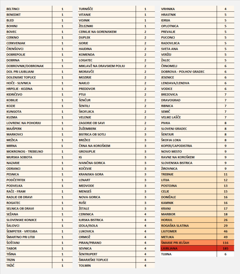 To je razporeditev obolelih po pomurskih občinah: