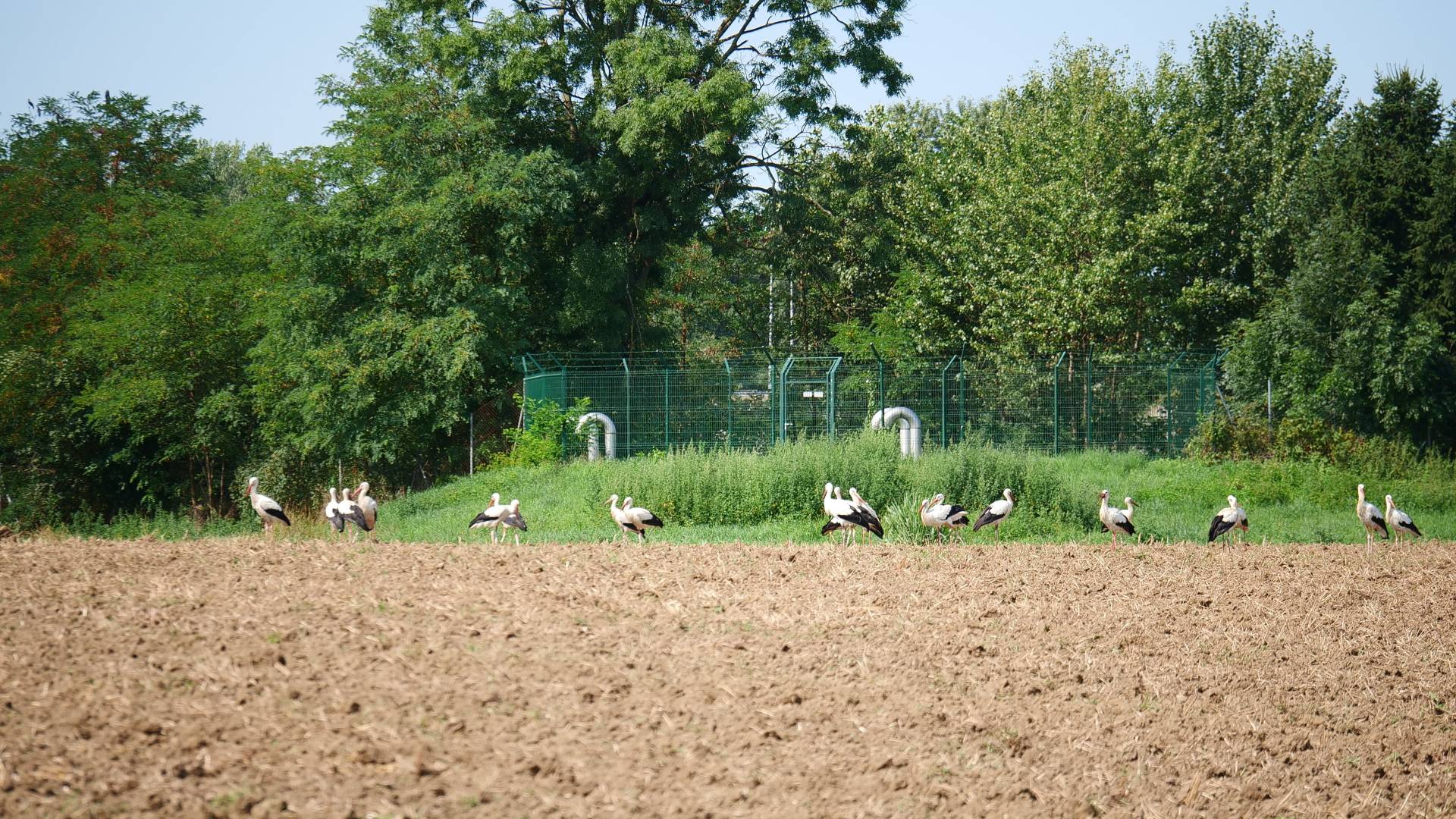 Na polju v bližini farme Nemščak v Ižakovcih se je že v začetku avgusta zbralo več kot 150 belih štorkelj, med katerimi so opazili celo eno črno štorkljo, ki velja za redkost v naših krajih.
