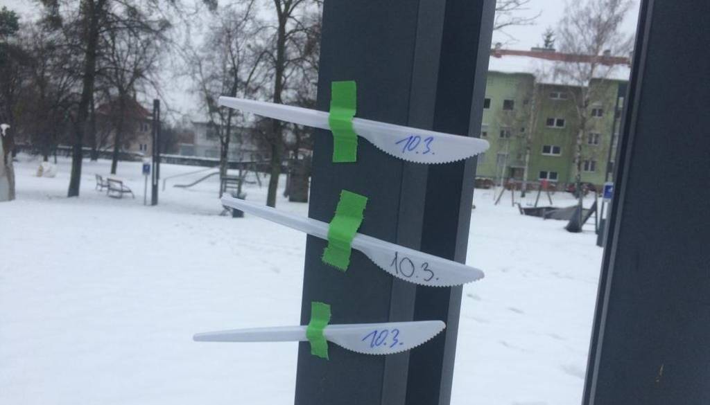 Pomursko javnost, še posebej pa občane Lendave je v začetku februarja zbegala kopica plastičnih nožev, ki so bili prilepljeni na objekte ulične razsvetljave in fasade stavb.
