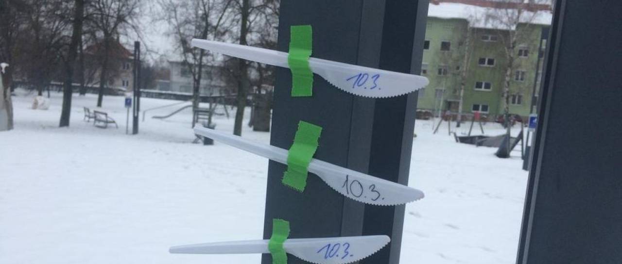 Ali v mestu odpirajo novo restavracijo? Bodo nogometni navijači ob naslednjem srečanju 'šli na nož'? Gre morda za kulinarični dogodek ali celo za grožnje? Ugibanj, ki so jih izzvali plastični noži, polepljeni po mestu, je končno konec.