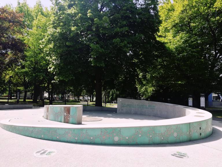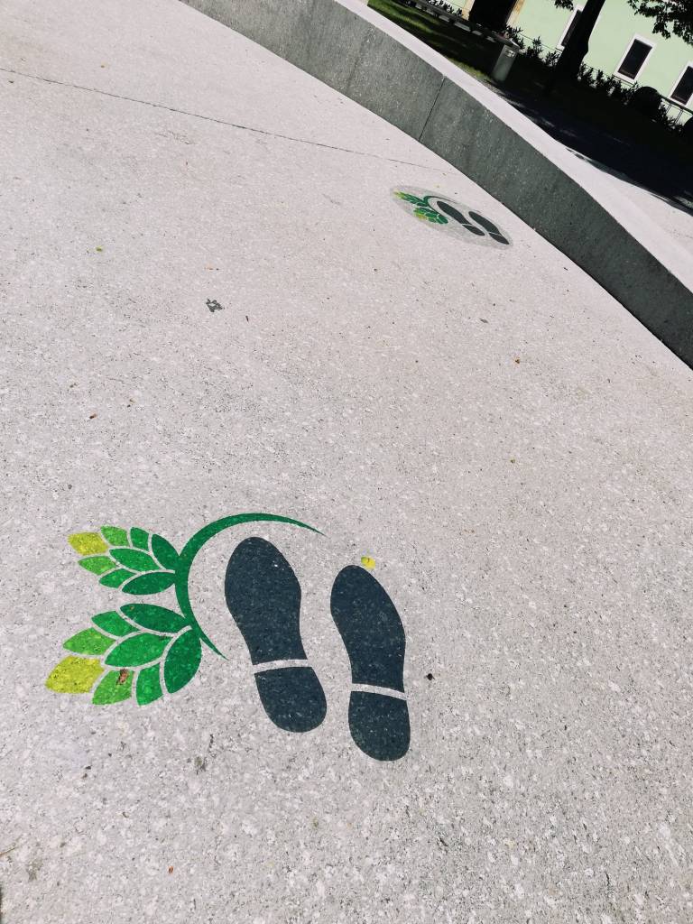 Okrog fontane pa je s hmeljevimi krogi označena varna pot, ki določa zadrževanje ljudi. Z oznakami so opremili tudi bližnje klopi: »Lahko se vsedete na klopce, kjer je tudi označeno, kje se lahko sedi in kje naj se ne bi sedelo, pripravljamo tudi mizice s primerno razdaljo.«