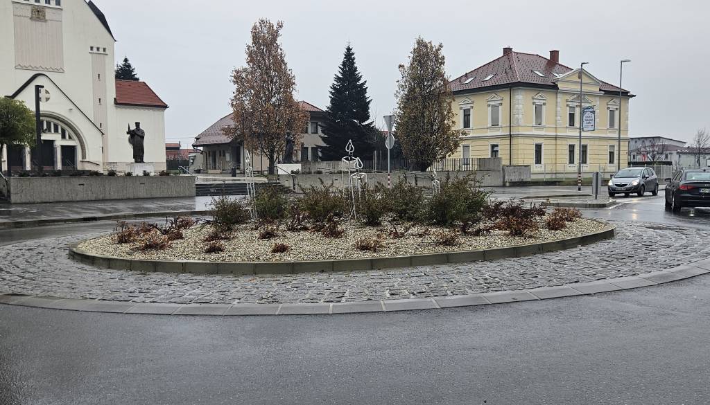 V krožišču pred stolno cerkvijo svetega Nikolaja v Murski Soboti so že namestili praznične luči v obliki sveč, ki simbolično napovedujejo prihajajoči adventni čas in prvo adventno nedeljo.