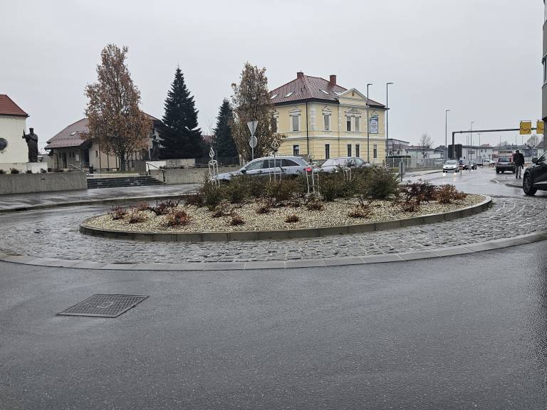 Svečane dekoracije v obliki sveč ne le estetsko obogatijo krožišče, temveč tudi poudarjajo duhovni pomen adventa kot obdobja pričakovanja in priprave na božič.
