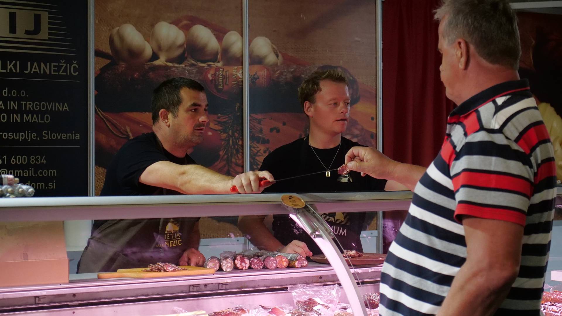 Notranji prostori so ponujali pravo kulinarično doživetje. Obiskovalci so okušali domače in tuje dobrote, med njimi suhomesnate izdelke, sir, med in sveže pečeno pecivo.