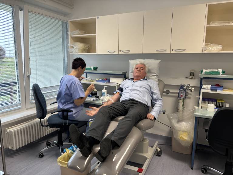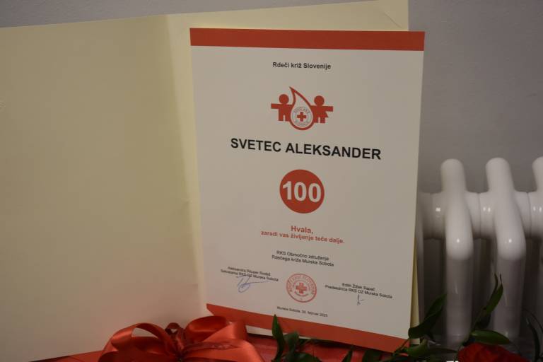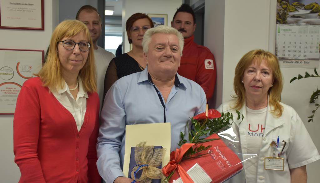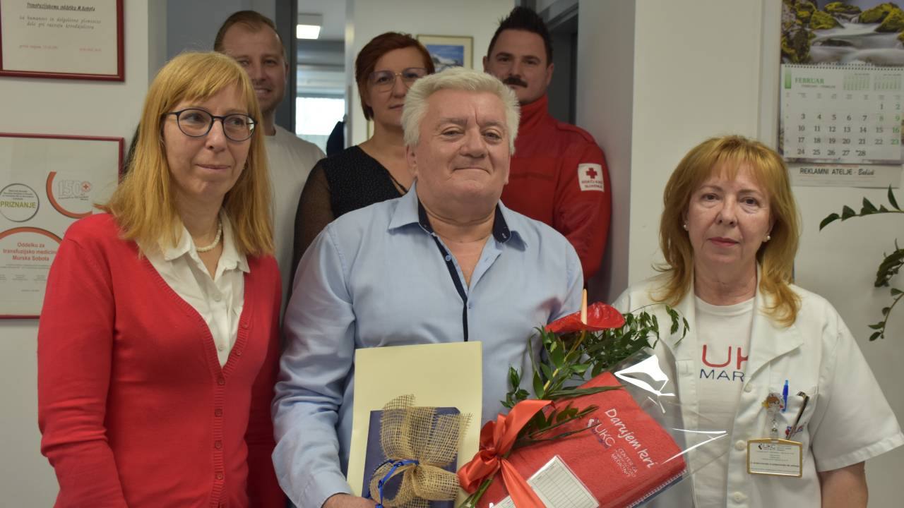 Aleksander Svetec iz Gornjih Petrovcev je danes v Enoti za transfuzijsko dejavnost Murska Sobota daroval kri že stotič.