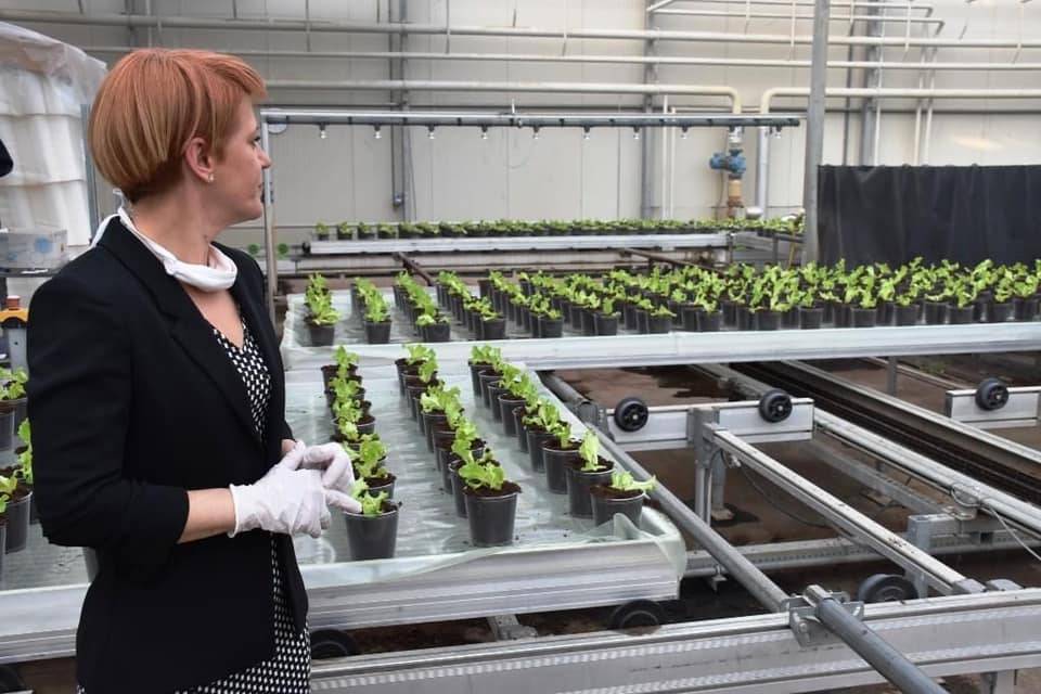 Ministrica za kmetijstvo, gozdarstvo in prehrano dr. Aleksandra Pivec je včeraj obiskala podjetje Ocean Orhids, kjer so začeli poskusno pridelovati zelenjavo.