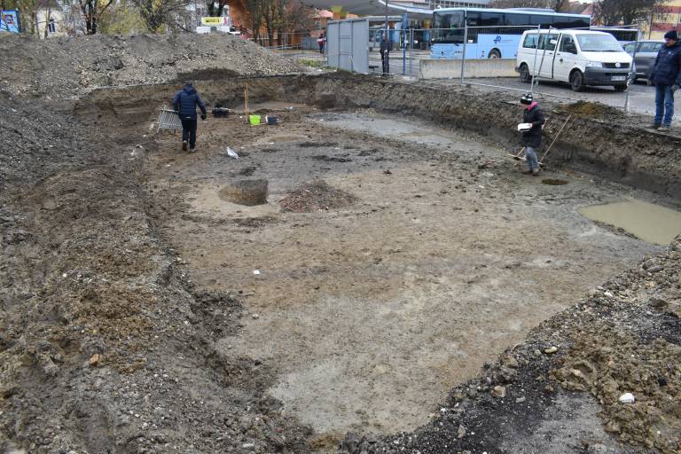 Arheologi na gramoznem parkirišču, kjer se bo gradila poslovno-stanovanjska stavba, nadaljujejo z izkopom arheoloških ostankov.