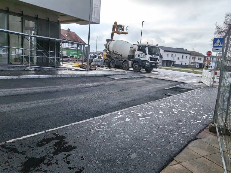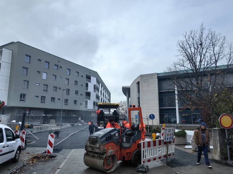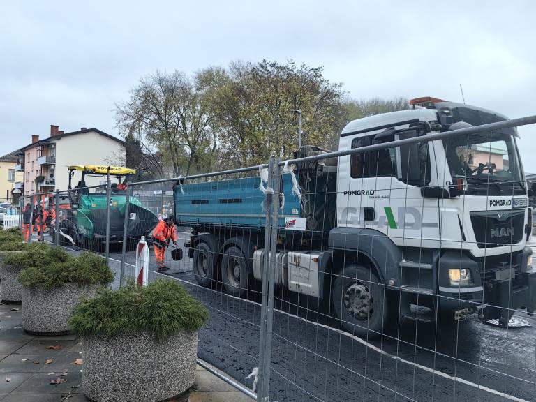 Danes je na Zvezni ulici, ki je že dlje časa zaprta za promet, zelo živahno, saj je asfaltiranje ulice v polnem teku.