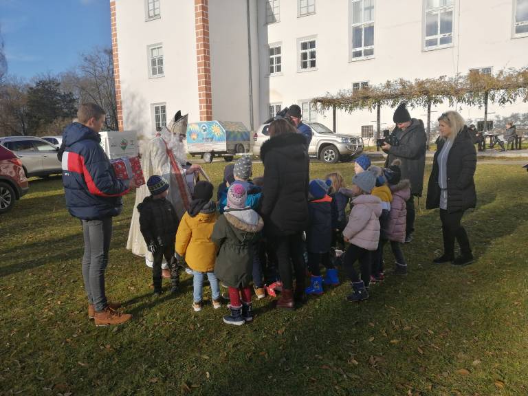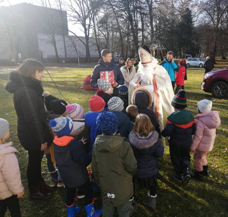 Baloni so v Mursko Soboto pripeljali Miklavža, ki je obdaroval pridne otroke.