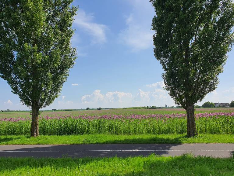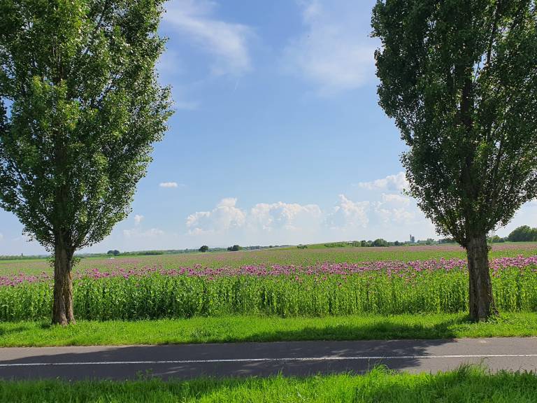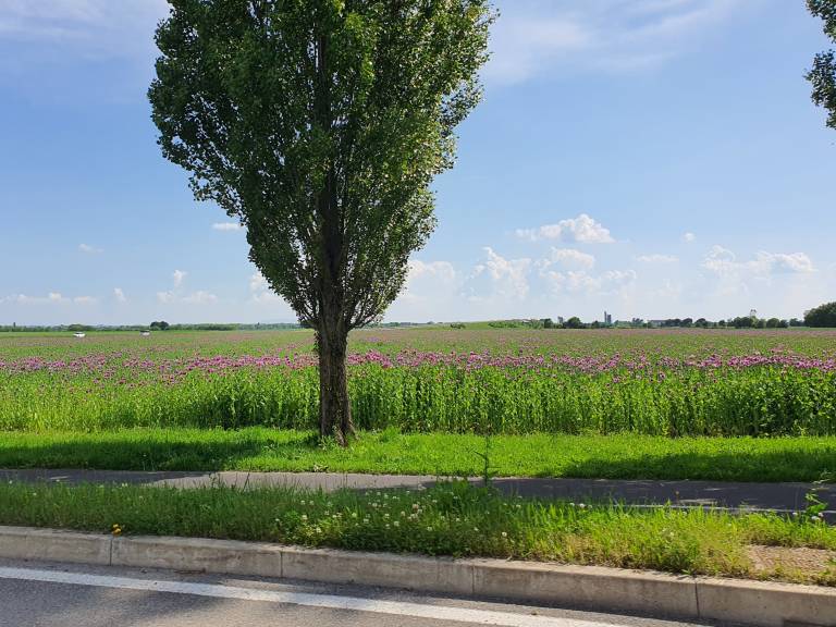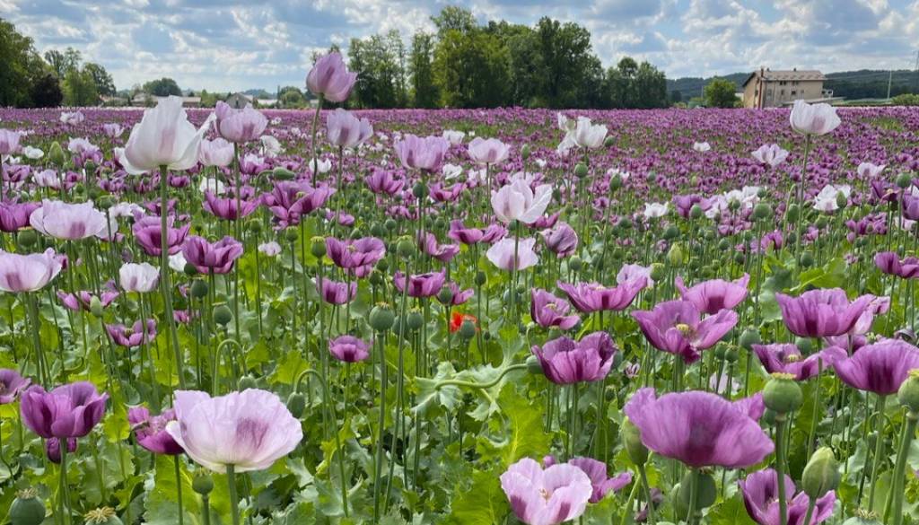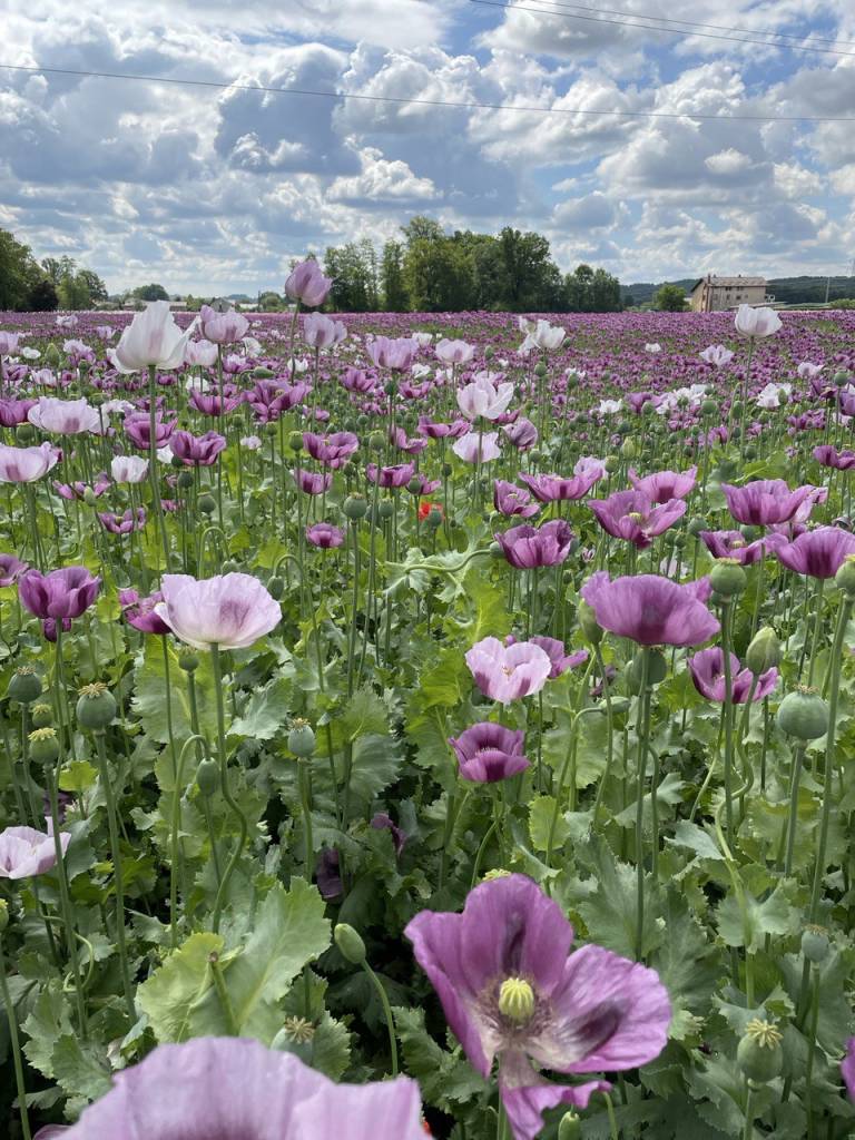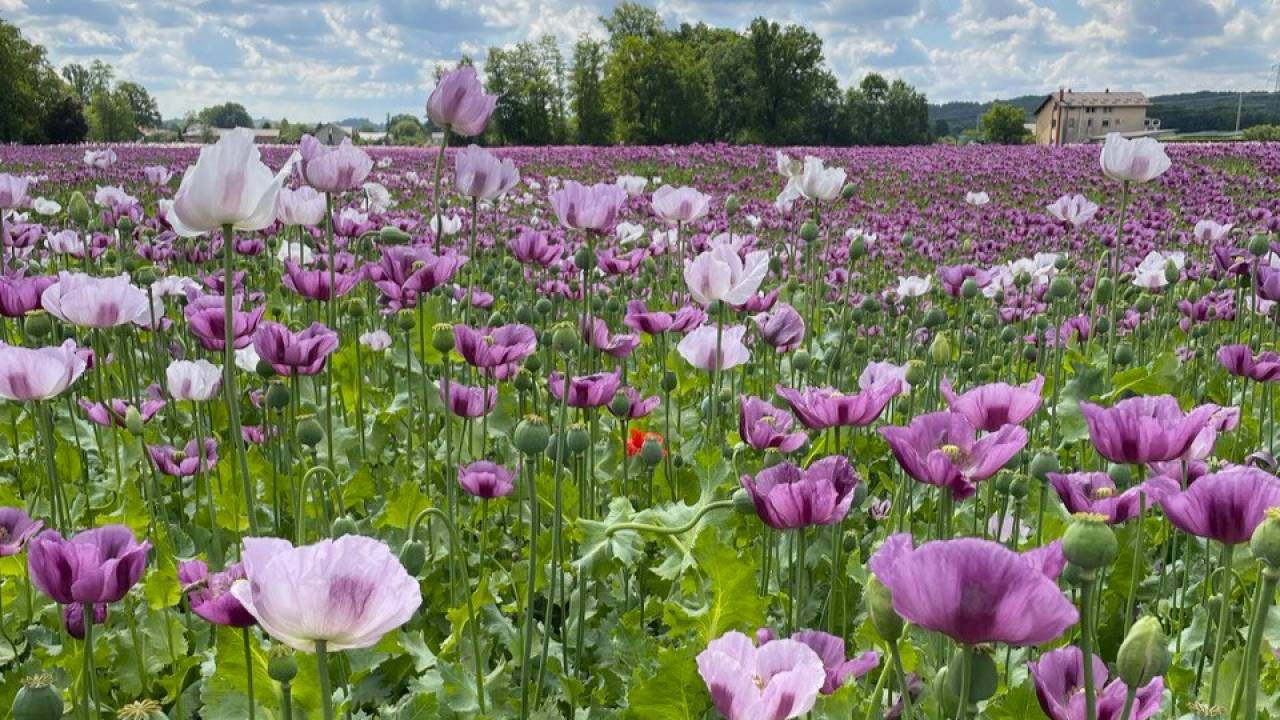 Barvita polja z vijoličnim makom v teh sončnih dneh pritegnejo marsikatero oko.