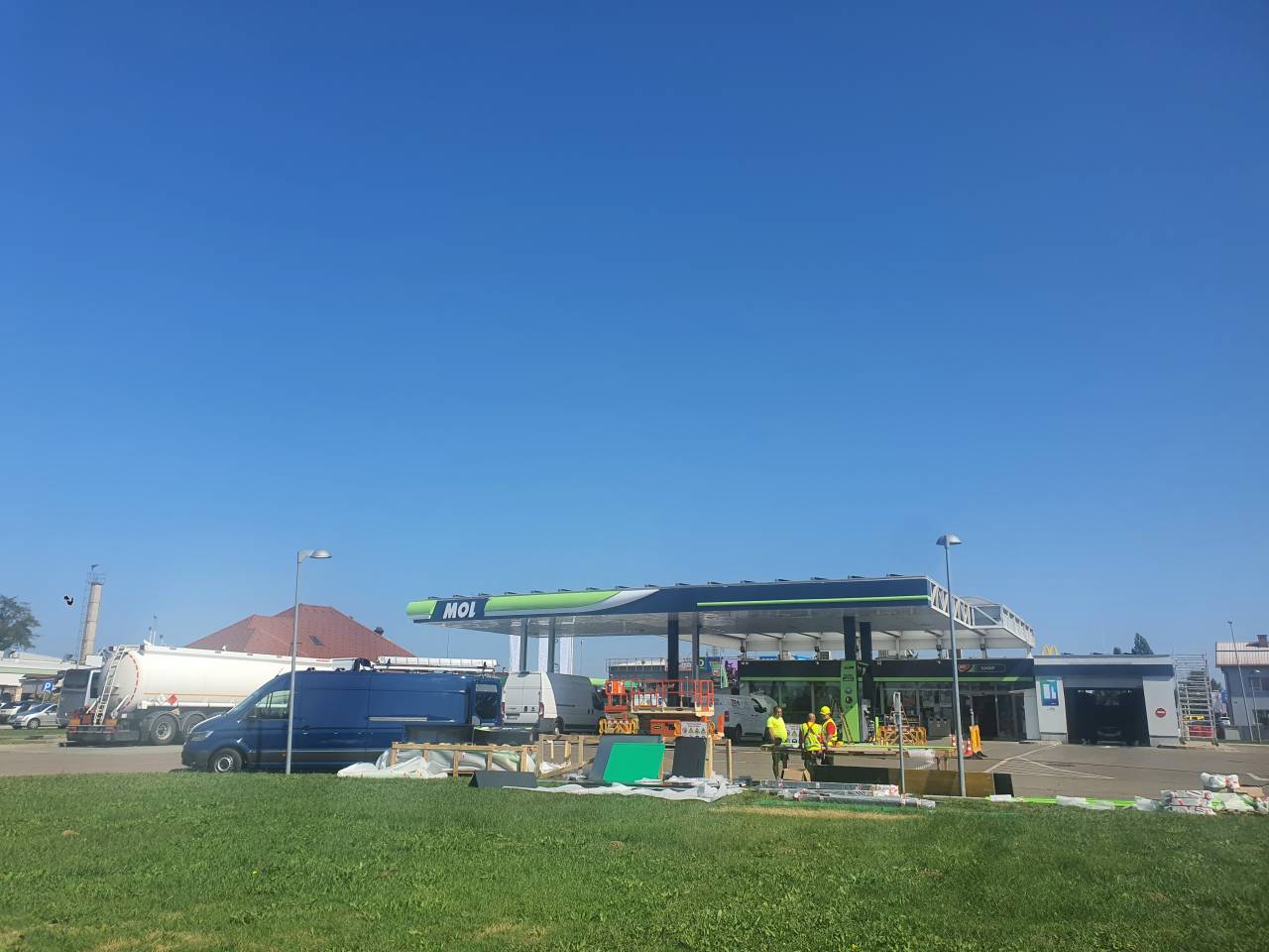Kot je razvidno iz fotografij, dela že prehajajo h koncu, zunanja podoba bencinske črpalke je popolnoma spremenjena, bencinski servis je tako že odet v barve MOL.