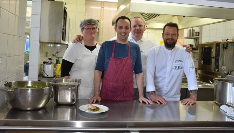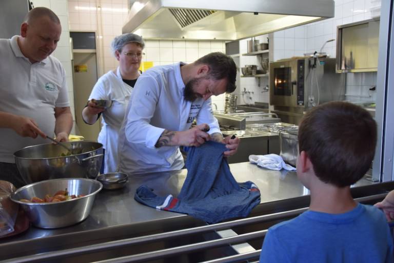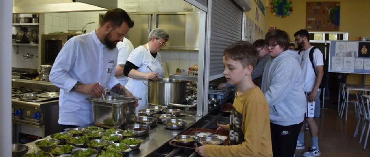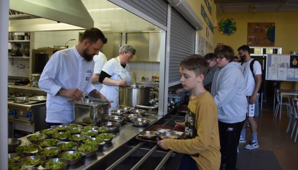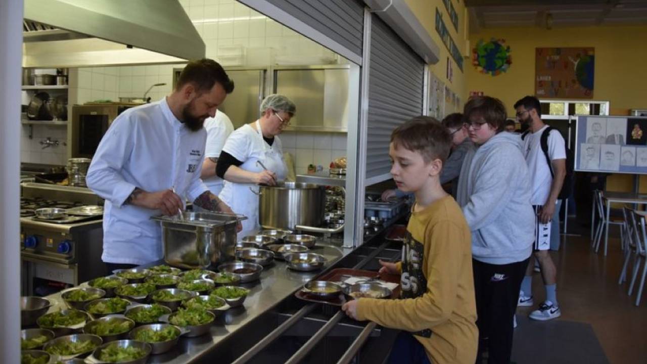 Volčič je z osebjem kuhinje pripravljal kosilo z ekološkimi sestavinami, kulinarično delavnico pa so pripravili v sklopu projekta.