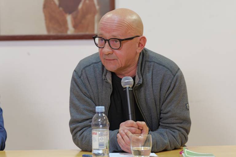 Gost večera je bil Boris Čibej, eden najvidnejših slovenskih zunanjepolitičnih novinarjev, ki je z obiskovalci razmišljal o tem, ali je v današnjem svetu še prostor za optimizem, miroljubno reševanje sporov, mednarodno pravo in etiko v mednarodni politiki.