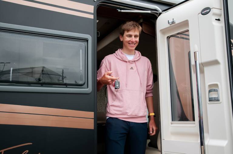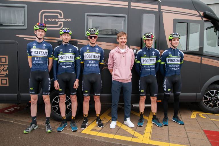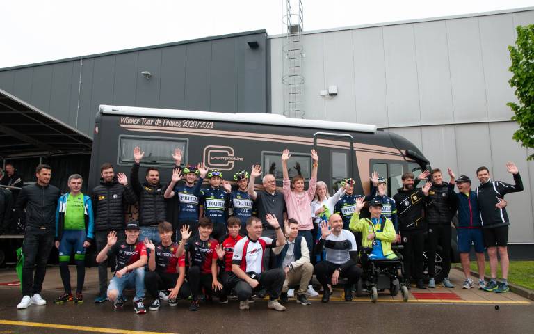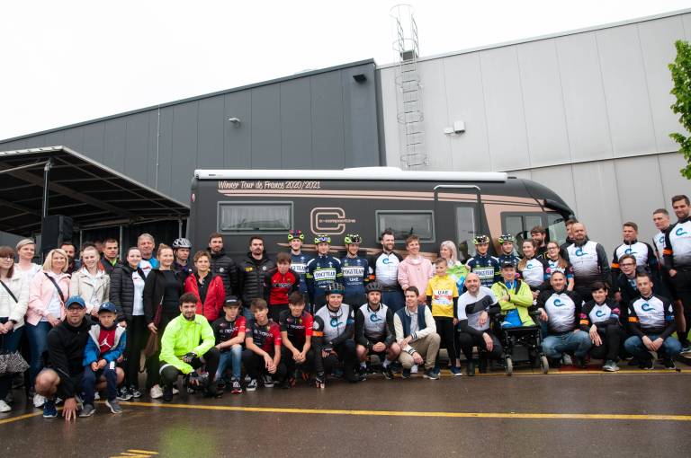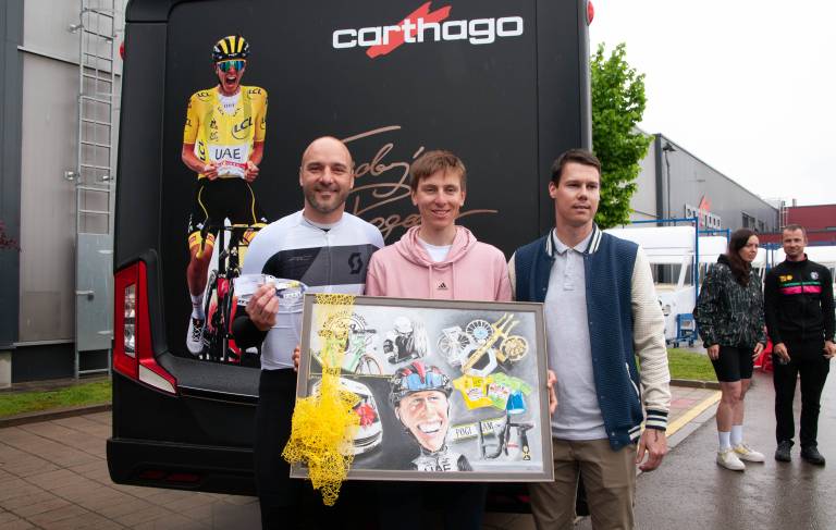 Kot v zahvalo za uspešno sodelovanje so na ta dan kolesarskemu šampionu Pogačarju na sedežu podjetja v Odrancih v uporabo predali tudi novo Carthagovo vozilo.