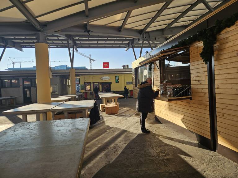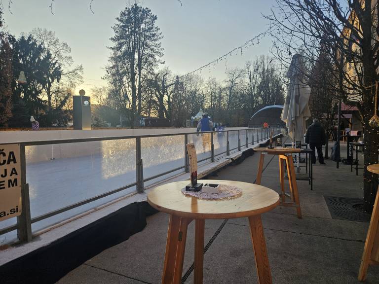 Po ulicah zadiši po kuhanem vinu in prazničnih dobrotah, saj ob drsališču stojijo hiške z gostinsko ponudbo, ki obiskovalcem ponujajo okusne prigrizke in tople napitke.
