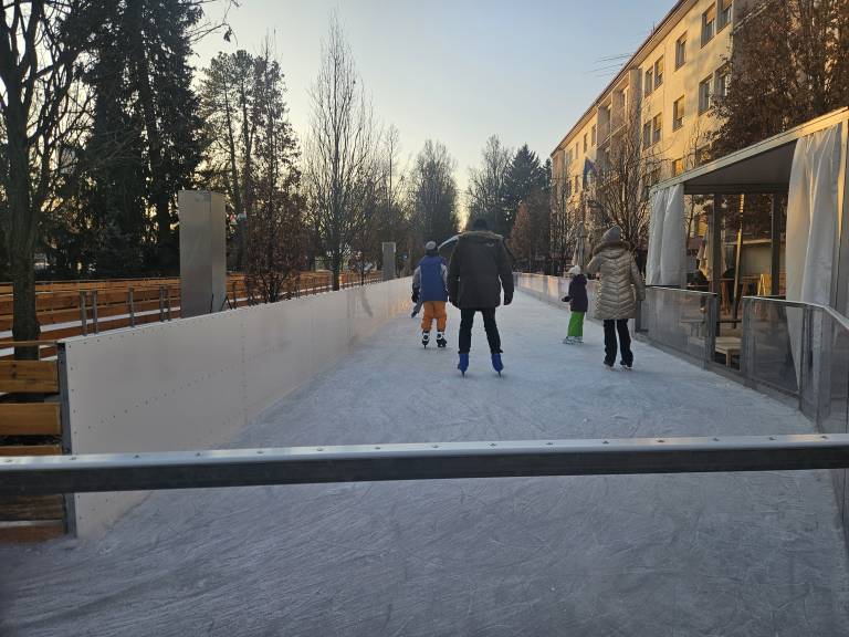Otroci navdušeno drsajo, medtem ko starši bodrijo njihove prve korake na ledu. Vstopnina je dostopna za vse, izposoja drsalk pa omogoča brezskrbno uživanje v tej zimski aktivnosti.