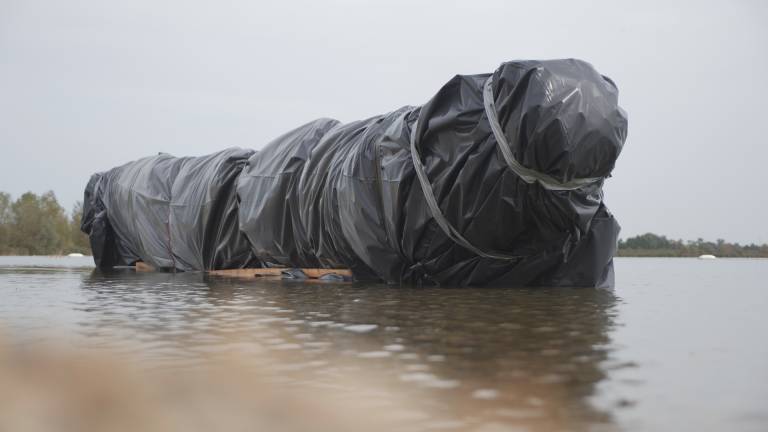 FOTO: Čoln deblak zavili v folijo, iščejo primerno mesto za potop. Kaj ta najdba pomeni za Pomurje?