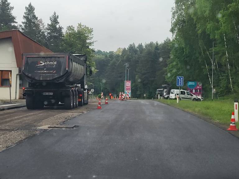 Parkirišče ob mejnem prehodu Kuzma začasno zaprto zaradi asfaltiranja.
