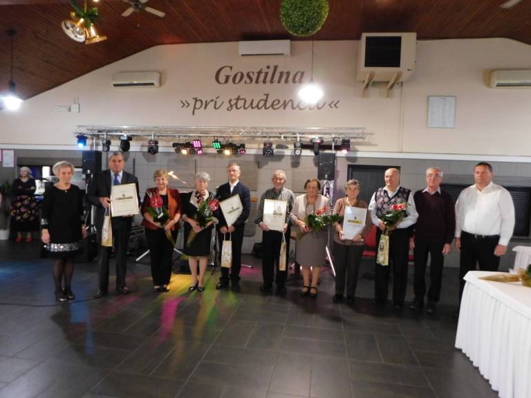 Za petdeset let zakonskega življenja so plaketo kot zlati jubilanti prejeli Ana in Stanko Režonja, Marija in Avgust Černi, Slavica in Štefan Nedelko, Marija in Anton Režonja, 60 let sta poročena Terezija in Jožef Pozderec, 65 let poroke oziroma železni jubilej pa praznujeta Katarina in Stanislav Sobočan.